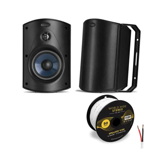 Polk Audio Atrium 5 All Weather Outdoor Loudspeaker Cable Bundle - Pair (Black)