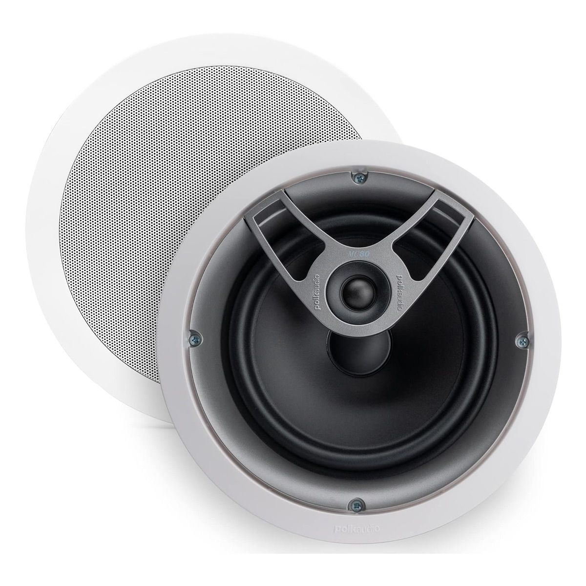 Polk Audio MC 80 8" In-Ceiling Speaker - Each (White)Fill your room with great sound without sacrificing an inch of floor space to bulky speakers. Polk's MC80 speakers install flush in your ceiling for a sleek dcor-friendly look. The 3/4" aimable tweeter lets you direct the high-frequencies where you like so you can fine-tune your system's sound. The 8" woofer provides rich smooth lows. And this speaker's moisture-resistant design means you can use it in your kitchen bathroom or even under the eaves outside.
