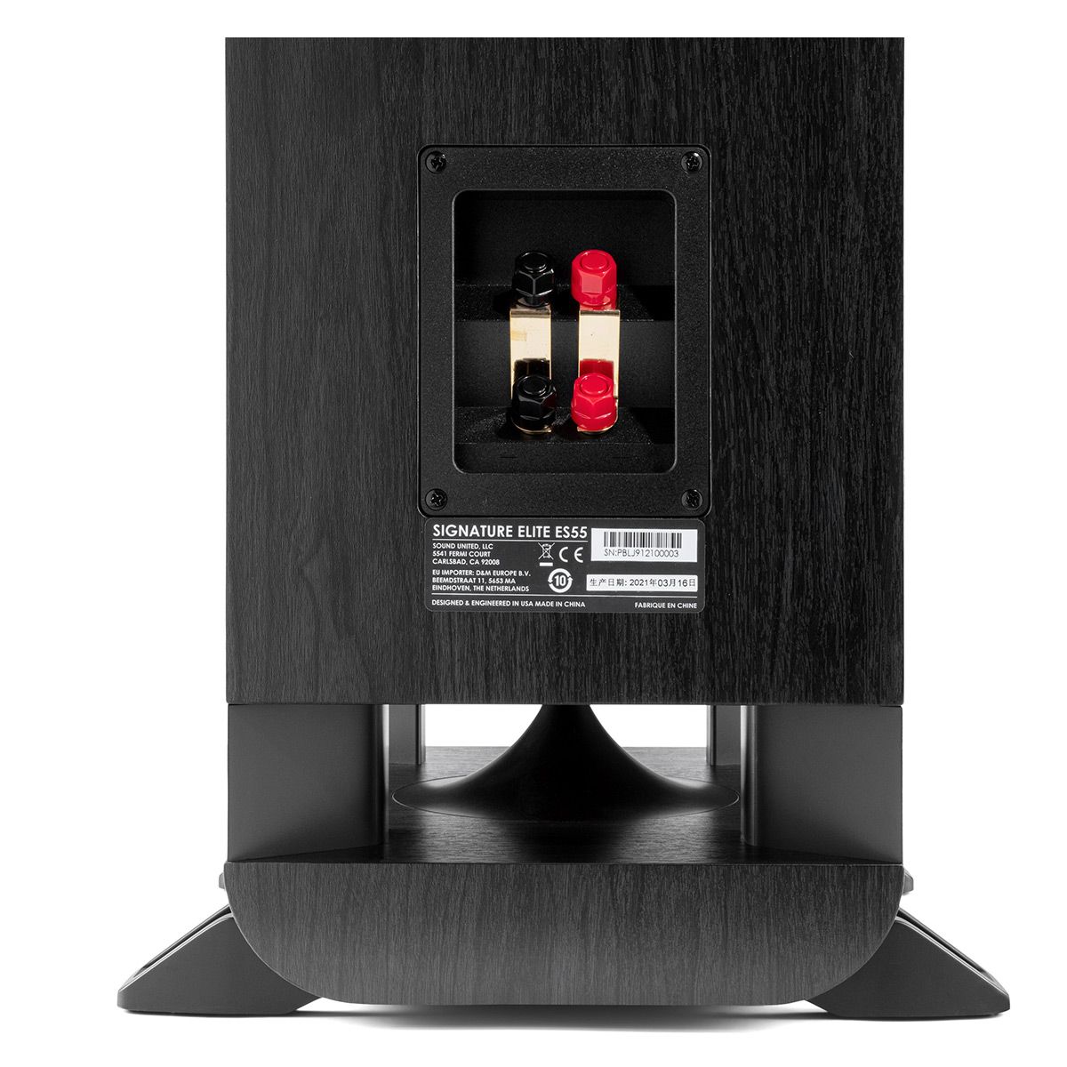 Built for Pure Sound A strong rigid and acoustically inert enclosure built with critically damped Medite MDF and laser-optimized bracing reduces internal standing waves and resonances for less coloration and distortion of your sound. The ES55’s anti-diffraction magnetic grille minimizes sonic interference and can be easily removed to provide a striking look while dual gold-plated five-way binding posts ensure the most direct efficient and lossless connection possible.