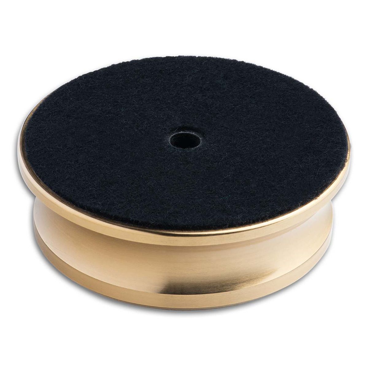 The Pro-Ject Polished Brass Record Puck is a mass-loaded record weight that performs especially well over robust ceramic platter bearings.
