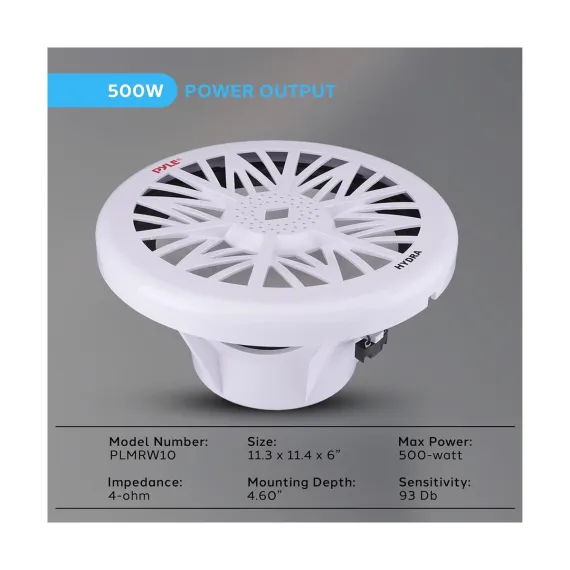 Pyle 10 Marine Subwoofer 500 Watt Water Resistant Design (PLMRW10) - White