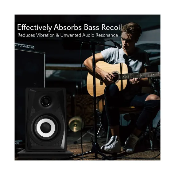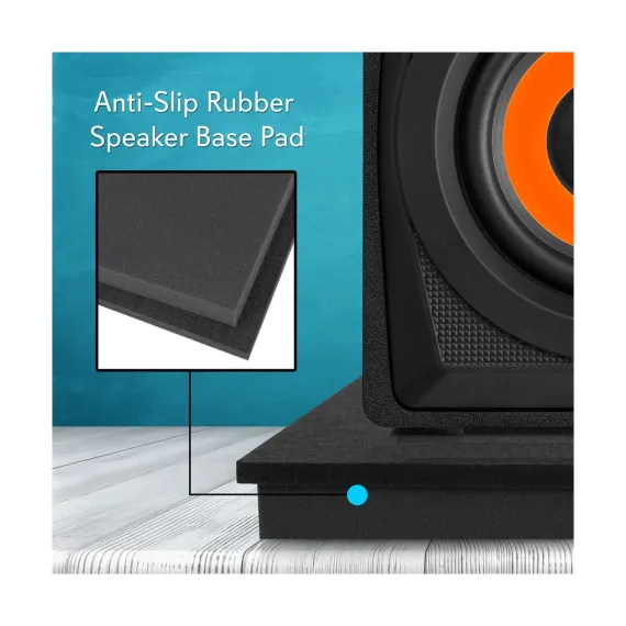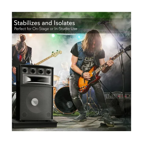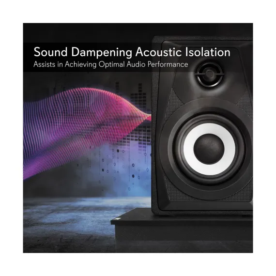 The Pyle 15"x15" Sound Isolation Speaker Platform Base PSI15 is designed to provide optimal studio-quality audio clarity. Its high-density, engineered foam construction helps eliminate unwanted audio resonance while promoting the flow of clean speaker sound projection. This platform is perfect for pro audio recording, on-stage performances, and studio use. The durable carpet-covered wooden base reduces vibration and effectively absorbs bass recoil, making it a reliable choice for DJs, MCs, sound engineers, and performers. With universal speaker compatibility, it supports up to 90 lbs, ensuring stable and clear audio frequencies. Elevate your sound experience with this sound dampening speaker platform.