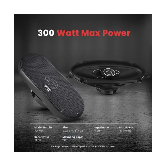 Pyle 300W 4" x 10" Triaxial Car Speaker System - Universal OEM Replacement, PL410BL (Pair)