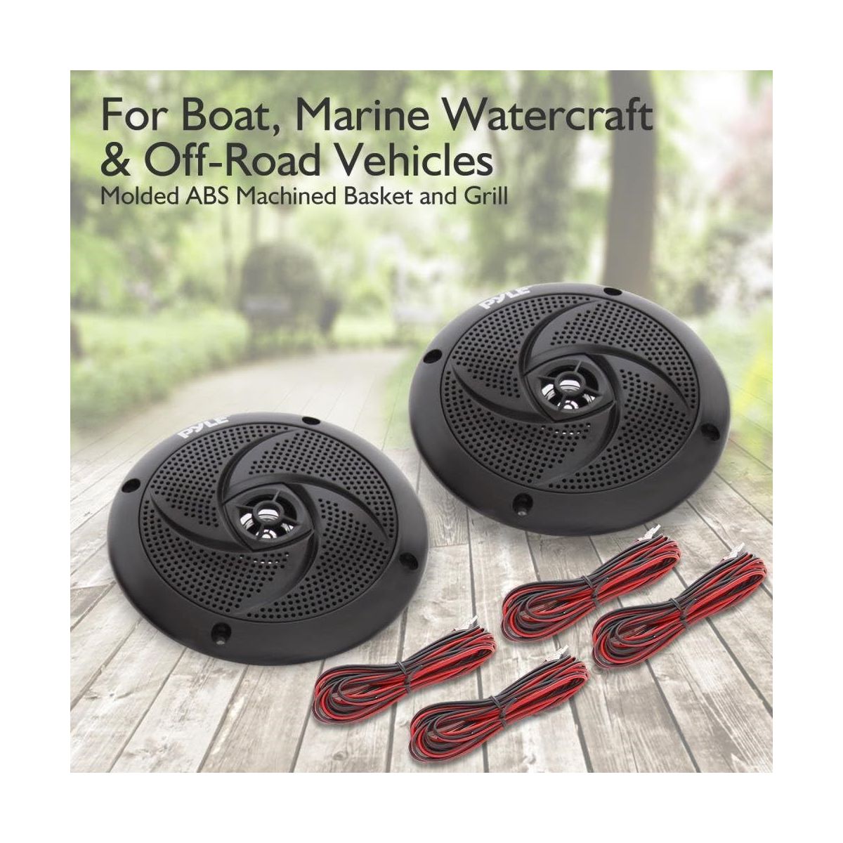 The Pyle Waterproof Rated Marine Speakers are perfect for marine and off-road enthusiasts looking for a durable and reliable audio solution. With a 4'' speaker size and a 100W max power output, these speakers deliver clear, full-range stereo sound. Their low-profile, slim housing ensures they fit easily in small spaces, while the rugged marine-grade construction and waterproof design ensure they can withstand the elements. The built-in blue LED lights add an extra touch of style, making these speakers perfect for both day and night use. Ideal for boats, marine watercraft, and off-road vehicles, these speakers are easy to install with the included speaker wires (9.8 ft).