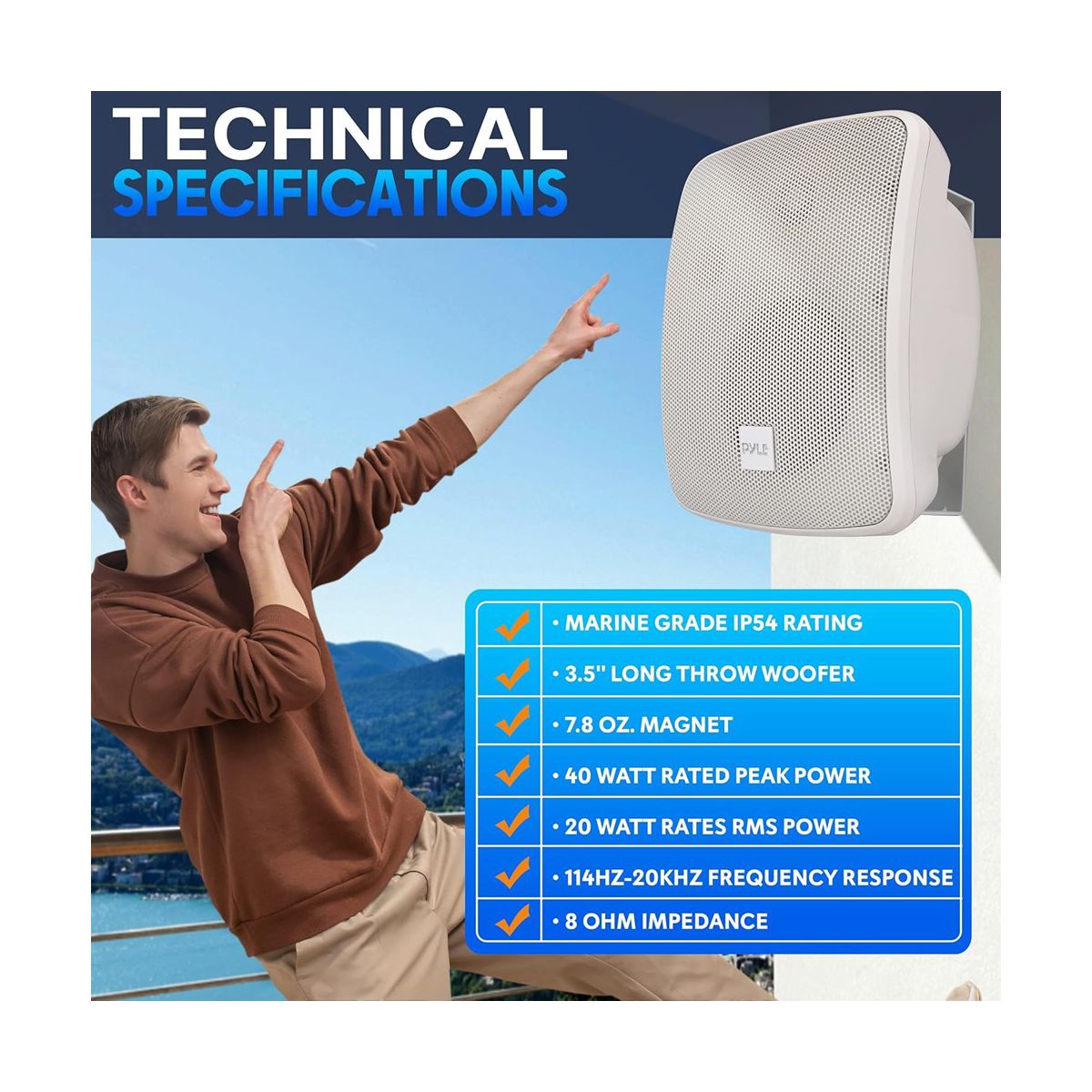 Pyle 4" Waterproof On-Wall/Patio Commercial Speaker - 40W, Marine Grade, Adjustable Bracket