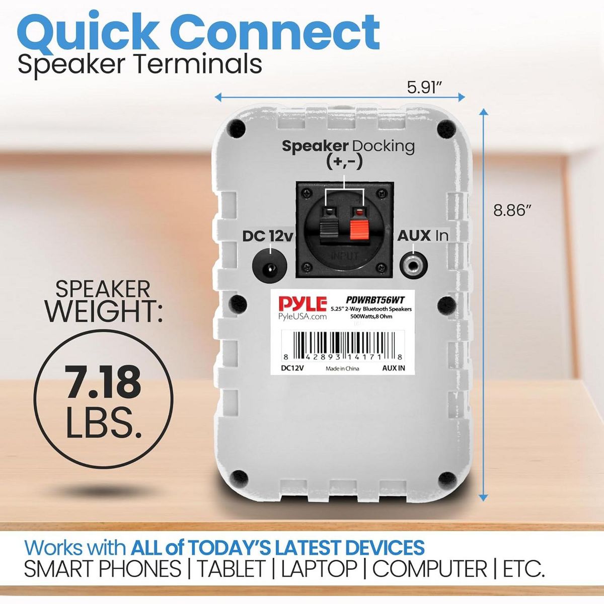 Pyle 5.25” 2-Way Indoor/Outdoor Bluetooth Speaker System (White) - PDWRBT56WT.1