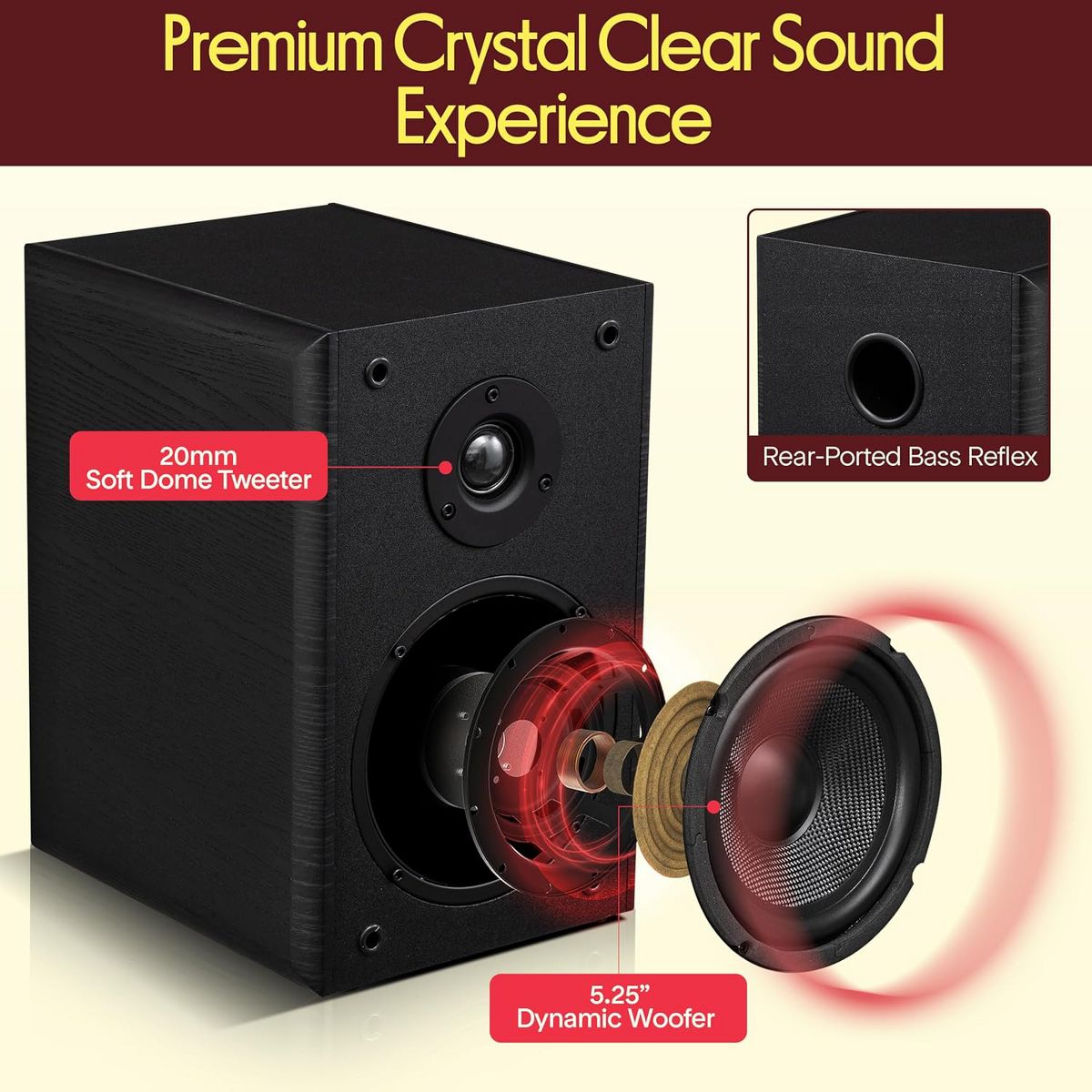Pyle 5.25" Home Theater Wooden Bookshelf Speakers - 2 Way HiFi Sound with Built-in Wall Mount (Pair) - Black