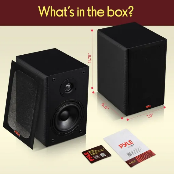 Add rich, dynamic sound to your home audio setup with the Pyle 5.25" Home Theater Wooden Bookshelf Speakers. These 2-way HiFi speakers feature a 5.25" woven glass fiber woofer and a 0.75" silk dome tweeter, delivering clear highs and deep, resonant lows. The cherry wood finish adds elegance and blends seamlessly with most décor, while the built-in wall mount bracket makes installation easy and flexible. Whether you're using them for a home theater, music room, or audio setup, these speakers are designed to deliver big sound in a compact package.