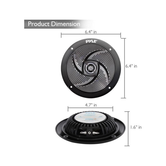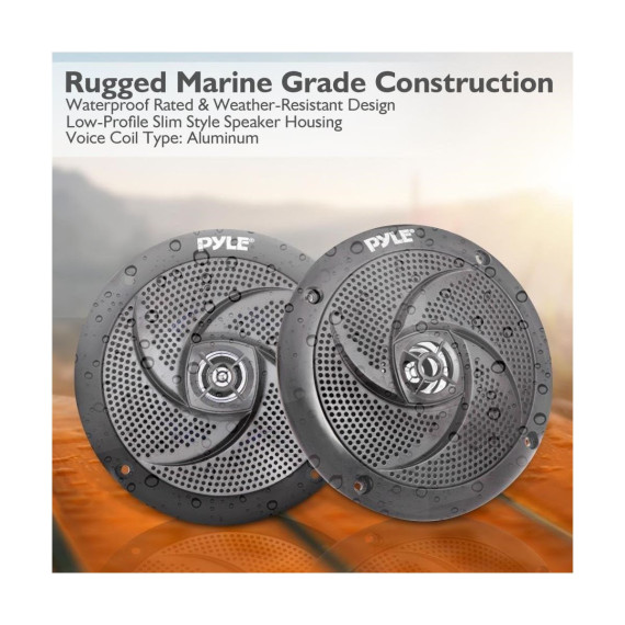 Enhance your boat or off-road vehicle with Pyle’s 5.25" low-profile marine speakers. Designed for durability, these speakers feature a waterproof, weather-resistant construction, making them ideal for marine watercraft and off-road adventures. The rugged ABS machined basket and grill ensure longevity, while the 180W max power output (90W RMS) delivers crisp, clear stereo sound. The universal standard size fits OEM replacement installations, and with a slim profile, they’ll fit in tight spaces without sacrificing sound quality. Enjoy easy installation with the included speaker wires and clear instructions. Perfect for any environment that requires reliable and powerful sound performance.