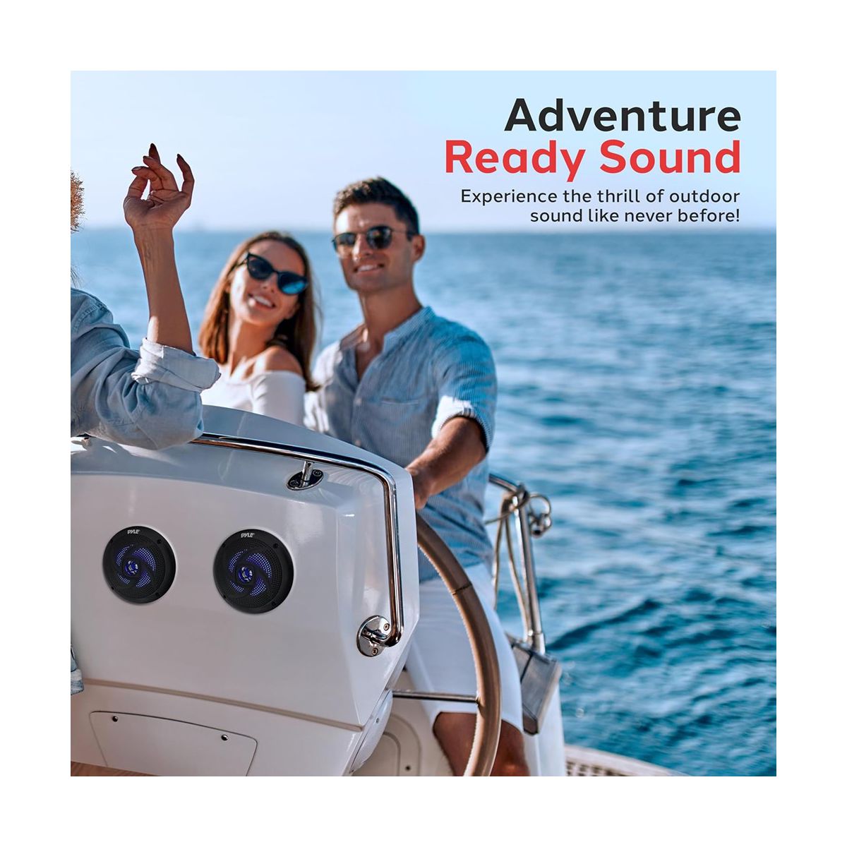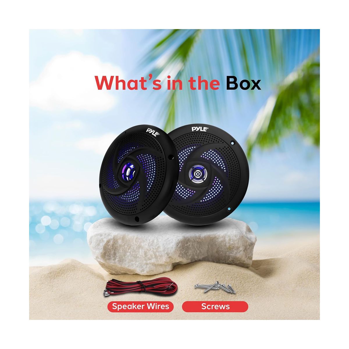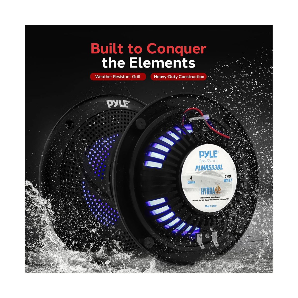 Pyle 5.25" Marine Waterproof Speakers with LED Lights - Blue, 180W, Pair