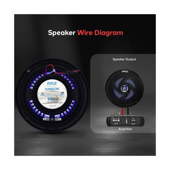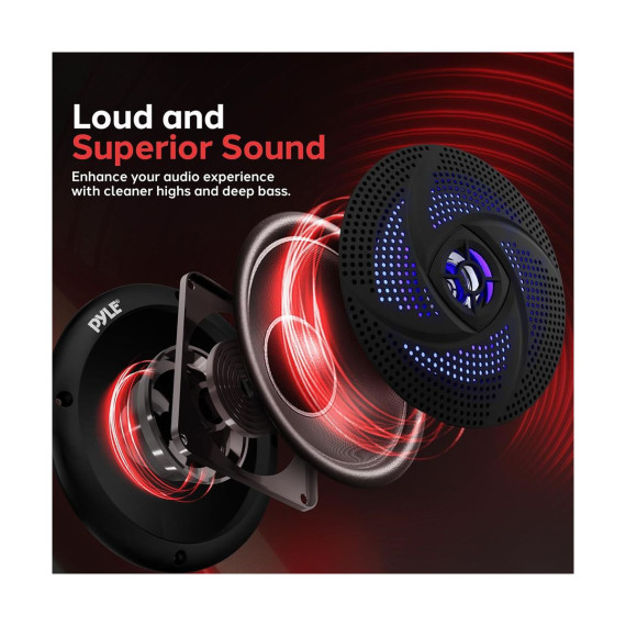 Upgrade your marine sound system with the Pyle 5.25" Marine Waterproof Speakers with LED Lights. Designed with durability and performance in mind, these speakers are built from rugged marine grade materials and feature a waterproof and weather-resistant design. The built-in blue LED lights add a vibrant touch, enhancing your marine experience both visually and audibly. These low-profile speakers deliver a powerful 2-way full range stereo sound, making them an excellent choice for boats, watercraft, and off-road vehicles. The molded ABS machined basket and grill ensure long-lasting performance, while the universal standard OEM replacement size makes installation easy.