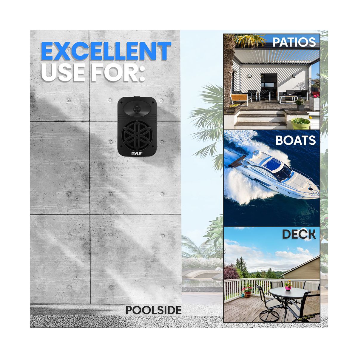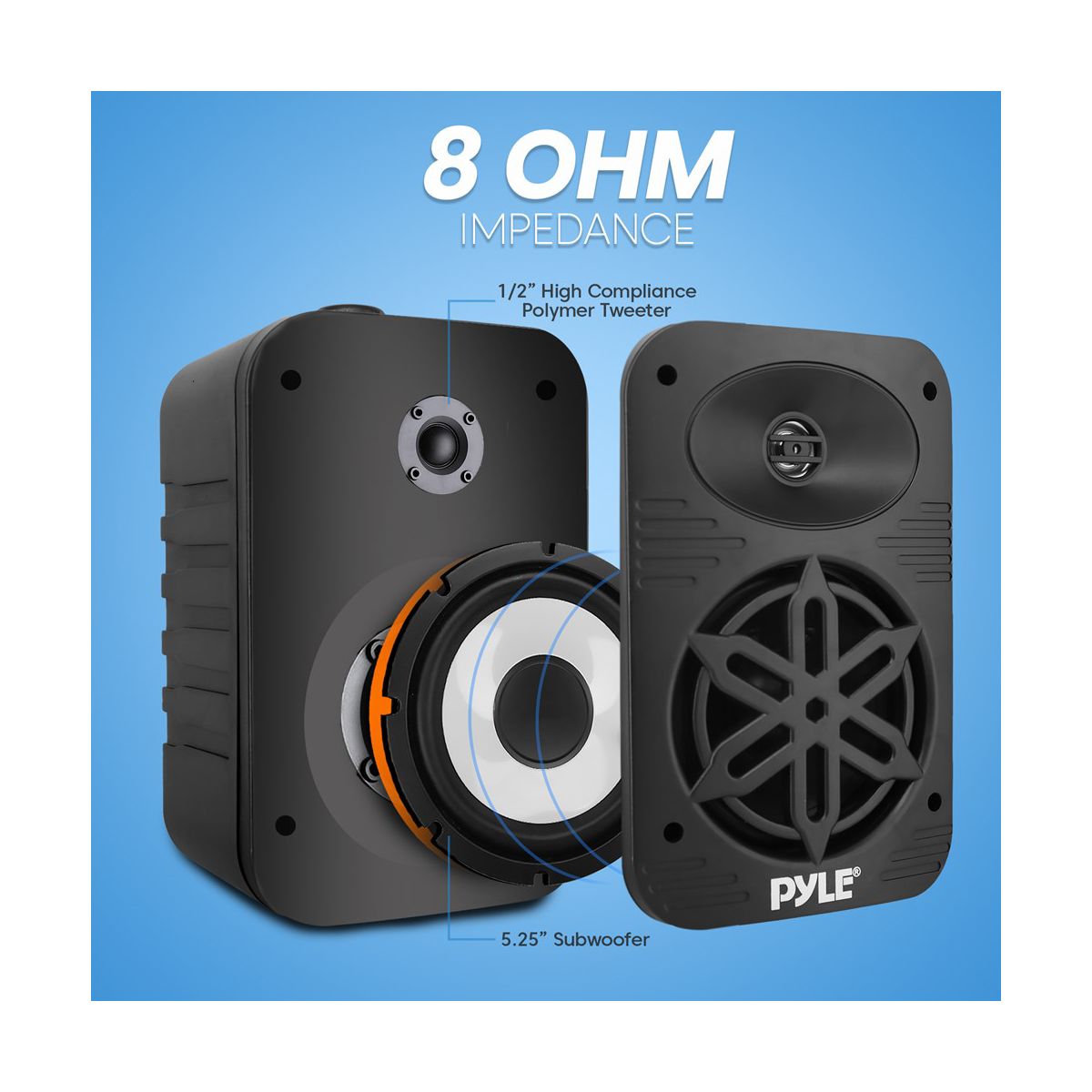 Enjoy high-quality sound outdoors with the Pyle 5.25" Waterproof Outdoor Speaker System. Designed for durability and excellent audio performance, these speakers feature a 5.25" long-throw woofer that delivers deep bass and a 1" tweeter for clear high frequencies. The waterproof design ensures reliable performance in all weather conditions, making them perfect for patios, decks, and poolside areas. You can easily stream your favorite music wirelessly from any compatible device. The speakers are easy to install with the included wall-mounting hardware, providing a seamless addition to your outdoor space. Durable and weather-resistant, the Pyle Outdoor Speaker System offers robust sound quality for all your outdoor entertainment needs.