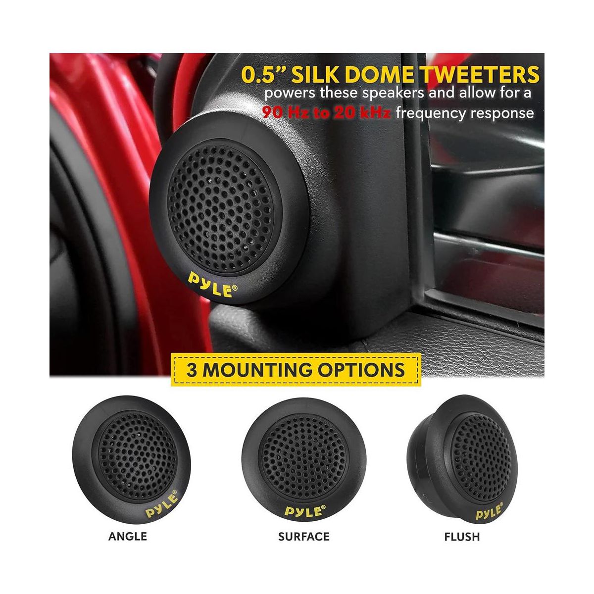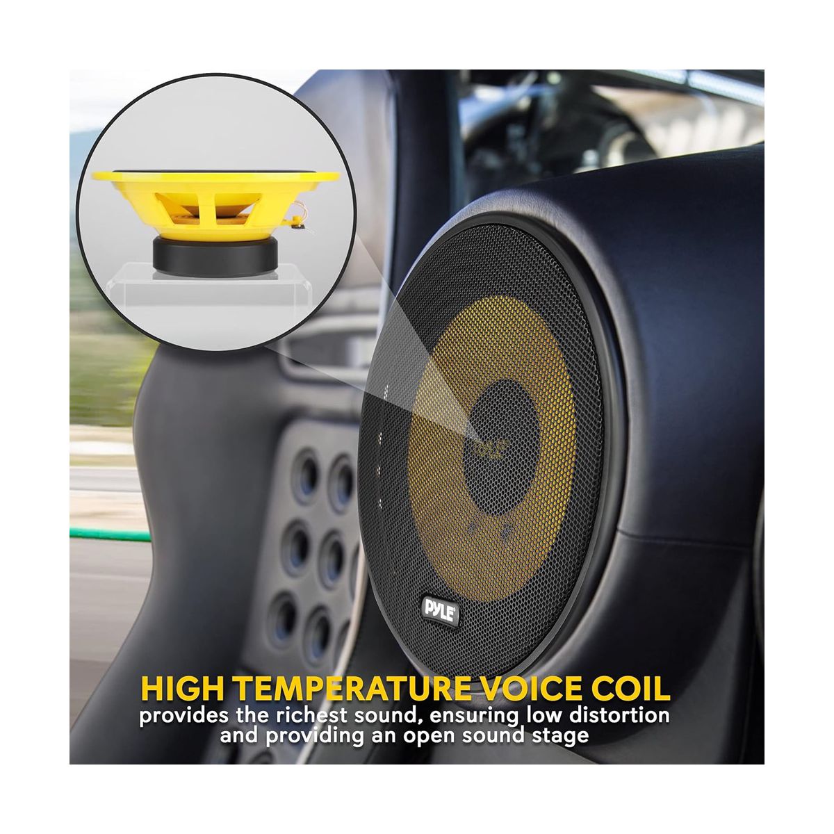 The Pyle PLG6C is a high-performance 6.5-inch component speaker system designed to deliver outstanding sound quality for automotive audio enthusiasts. This kit includes a pair of 6.5" mid-bass speakers, a pair of 0.5" silk dome tweeters, and a pair of passive crossover networks, providing you with everything you need for a premium audio upgrade. The 6.5" mid-bass speakers handle 400 watts of peak power and feature a yellow poly injection cone with a non-fatiguing butyl rubber surround for superior sound reproduction.
