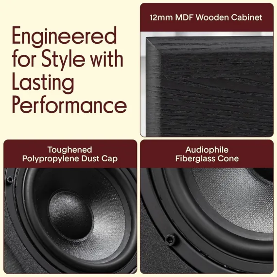 Elevate your home audio experience with the Pyle 6.5" Home Theater Wooden Bookshelf Speakers. Designed to deliver dynamic sound in a compact form, these speakers feature a 2-way HiFi design with a 6.5" woven glass fiber woofer and a 0.75" silk dome tweeter. The sleek, wooden construction not only looks great in any space but also enhances sound quality. These speakers are perfect for home theater setups, delivering crisp highs and deep lows for a superior listening experience. The built-in wall mount bracket ensures easy installation, making these speakers versatile and perfect for a variety of audio setups.