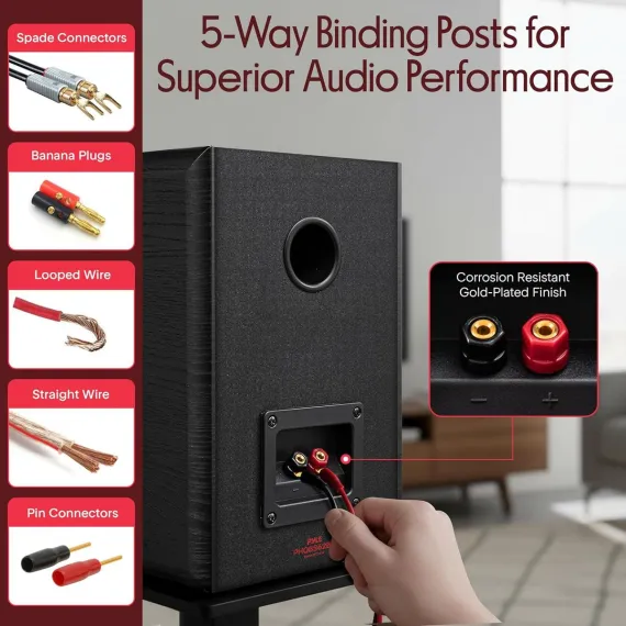 Pyle 6.5" Home Theater Wooden Bookshelf Speakers - 2 Way HiFi Sound with Built-in Wall Mount Bracket for Easy Installation (Pair) -(Black)
