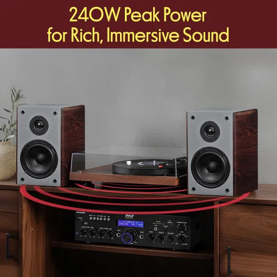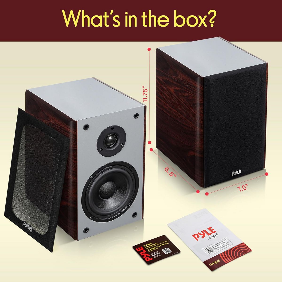 Elevate your home audio experience with the Pyle 6.5" Home Theater Wooden Bookshelf Speakers. Designed to deliver dynamic sound in a compact form, these speakers feature a 2-way HiFi design with a 6.5" woven glass fiber woofer and a 0.75" silk dome tweeter. The sleek, wooden construction not only looks great in any space but also enhances sound quality. These speakers are perfect for home theater setups, delivering crisp highs and deep lows for a superior listening experience. The built-in wall mount bracket ensures easy installation, making these speakers versatile and perfect for a variety of audio setups.