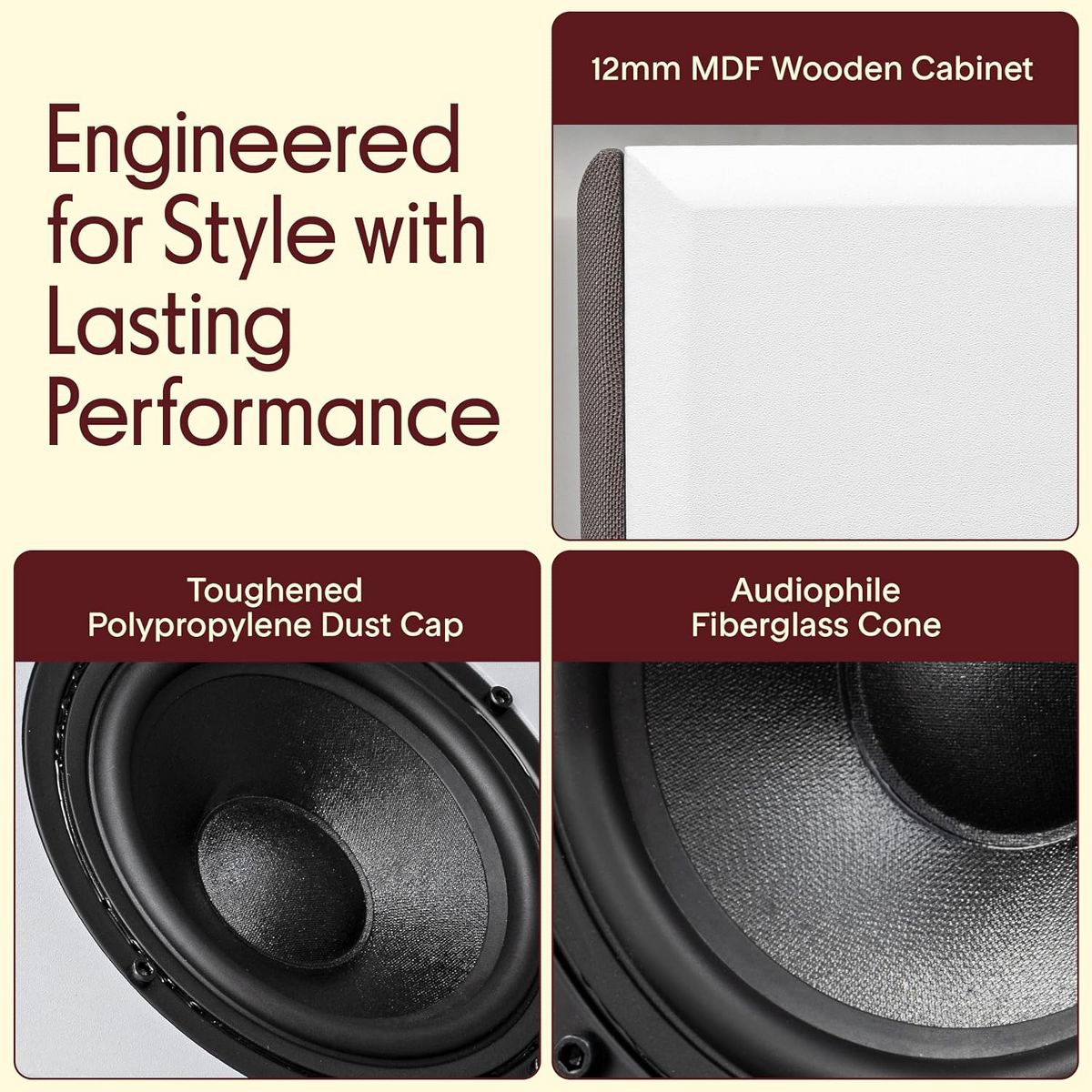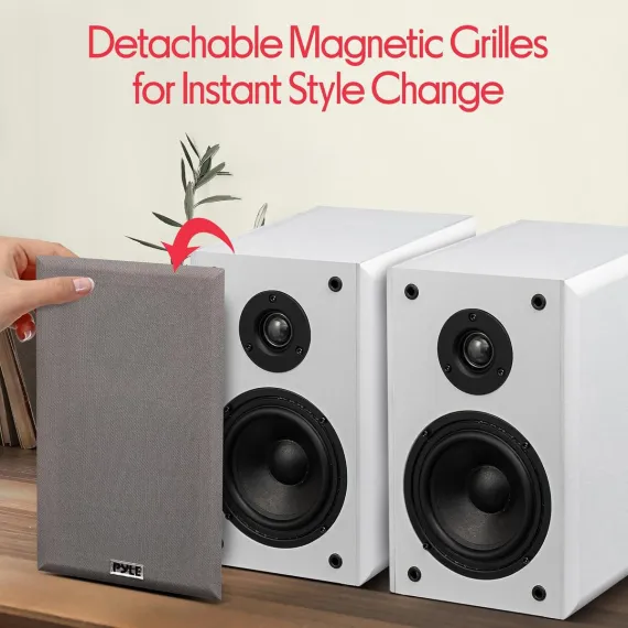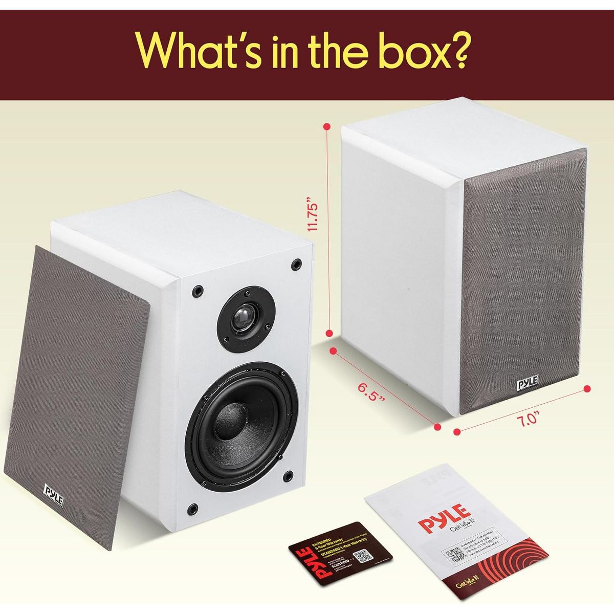 Pyle 6.5" Home Theater Wooden Bookshelf Speakers - 2 Way HiFi Sound with Built-in Wall Mount Bracket for Easy Installation (Pair) -(White)