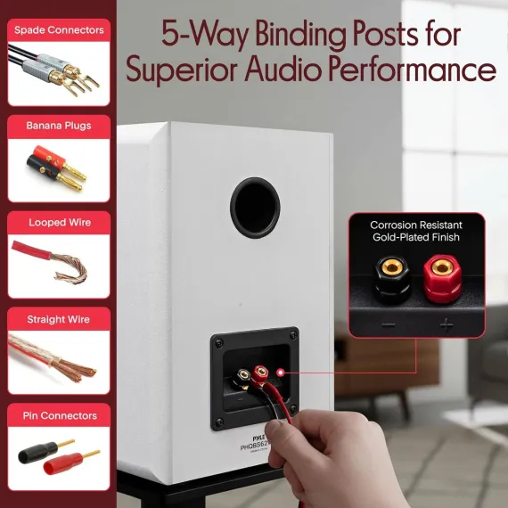 Elevate your home audio experience with the Pyle 6.5" Home Theater Wooden Bookshelf Speakers. Designed to deliver dynamic sound in a compact form, these speakers feature a 2-way HiFi design with a 6.5" woven glass fiber woofer and a 0.75" silk dome tweeter. The sleek, wooden construction not only looks great in any space but also enhances sound quality. These speakers are perfect for home theater setups, delivering crisp highs and deep lows for a superior listening experience. The built-in wall mount bracket ensures easy installation, making these speakers versatile and perfect for a variety of audio setups.