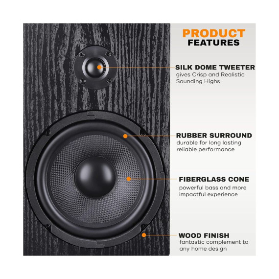 Pyle 6.5" Home Theater Wooden Bookshelf Speakers - PSMSP6