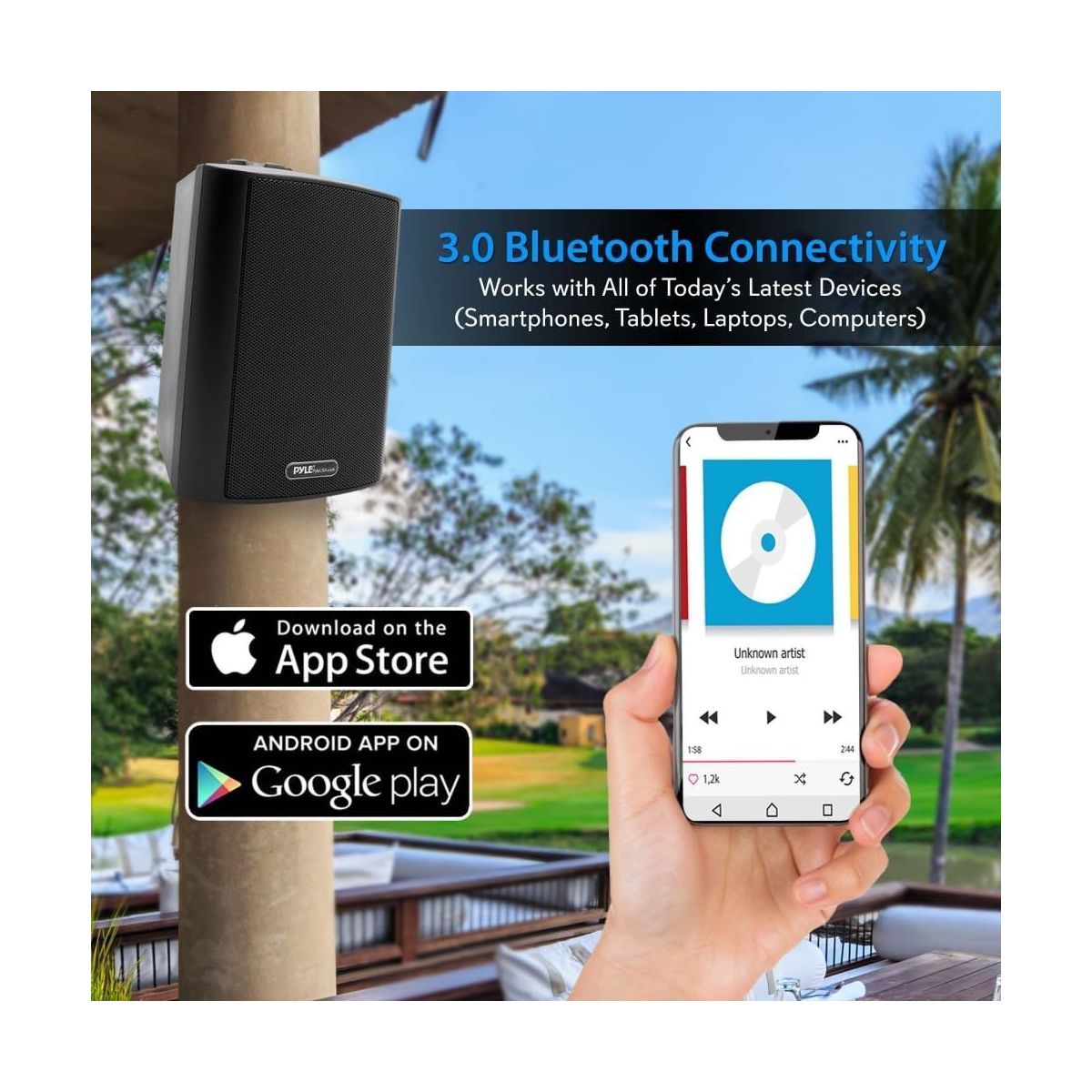 Pyle 6.5 Indoor/Outdoor Bluetooth Wall Mount Speakers (PDWR62BTBK) - Black, 2-Piece Set