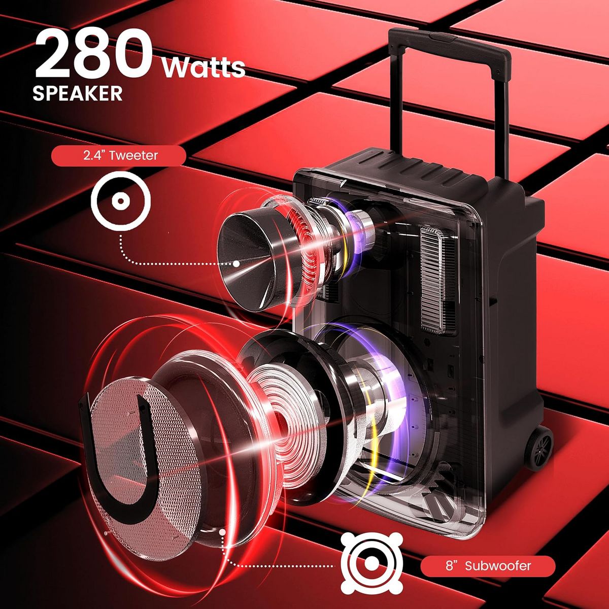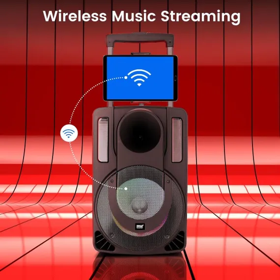 The Pyle 8” Bluetooth Portable PA Speaker is a powerful and portable sound system, perfect for parties, karaoke, or any event that requires great sound and fun features. Equipped with Bluetooth streaming, flashing LED party lights, and multiple input options, it ensures that your music and announcements will be heard clearly and loudly. Wireless microphones and a rugged design make it the ideal speaker for both indoor and outdoor use.