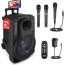Pyle 8” Bluetooth Portable PA Speaker - Portable PA & Karaoke Speaker with Two Wireless Microphones