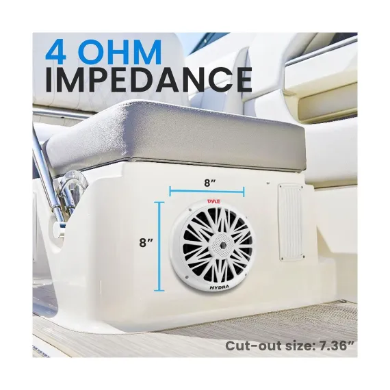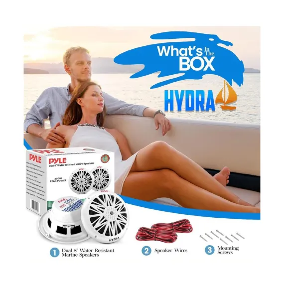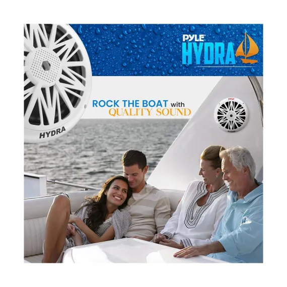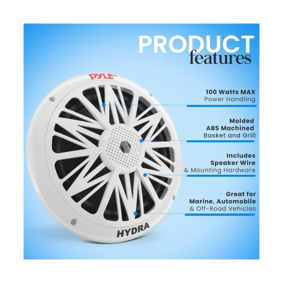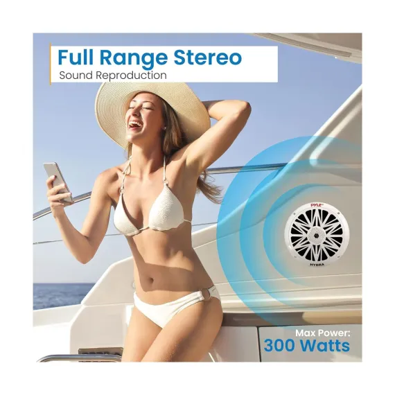Upgrade your sound system with Pyle's Hydra series 8'' Marine Grade Component Speakers. These speakers are specifically designed for marine environments, featuring a weather-resistant construction that ensures durability and longevity whether you're on a boat, by the pool, or enjoying outdoor activities. With a powerful 300W max power output and a full-range stereo sound, your music will come alive with clear and rich audio. The dual cone design includes a poly carbon cone and a cloth surround for optimal sound reproduction. Equipped with a ½'' neodymium dome tweeter, these speakers produce crisp highs, while the high-temp aluminum voice coil enhances overall sound quality. Installation is made easy with the included mounting hardware and speaker wire. Invest in superior sound with Pyle's reliable marine speakers.