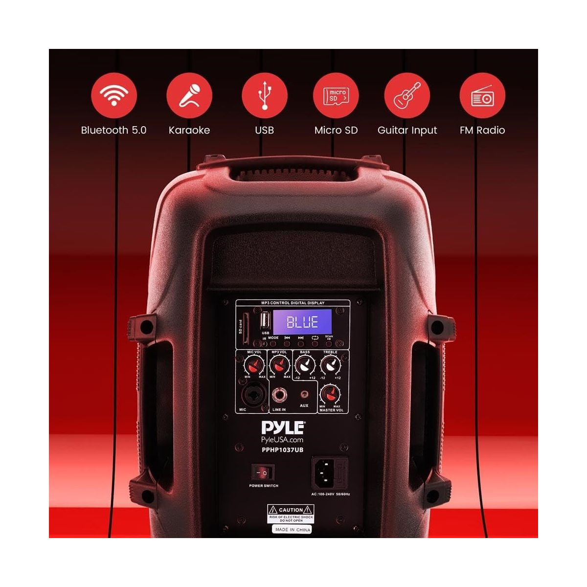 Pyle Bluetooth PA Speaker System, 10" Subwoofer, 1000W MAX, FM Radio, USB/SD, Aux Input, Recording Ability – PPHP1037UB