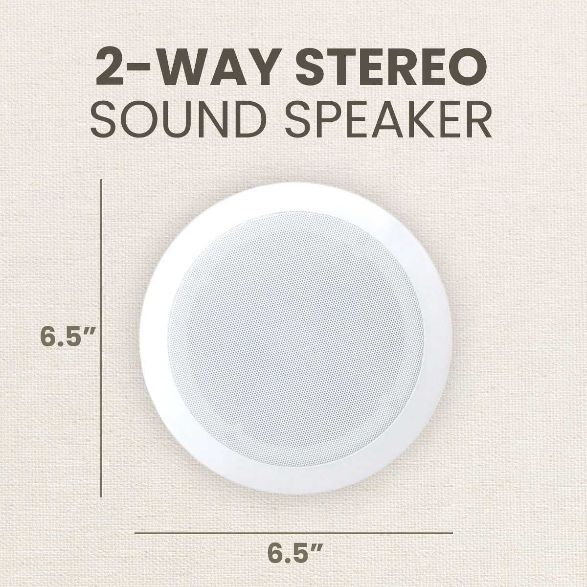 The Pyle Home Ceiling Speakers are aesthetically pleasing and incredibly functional, making them an excellent addition to your home or office audio setup. Their unobtrusive installation and superior sound quality enable you to create the perfect atmosphere for various occasions, from casual relaxation to lively parties. Say goodbye to the hassle of setting up traditional, space-consuming speaker systems. Say hello to a sleek and efficient audio solution that transforms any room into a vibrant and engaging audio haven. Whether you're seeking to entertain guests, immerse yourself in movies, or unleash your inner rock star, these ceiling speakers provide the ideal blend of style and performance to elevate your audio experience. These 6.5-inch, 2-way stereo speakers can be used for in-wall and in-ceiling applications as they mount flush for a clean look. Perfect for custom installations, the PDIC series speakers feature impressive power handling capability, a 1-inch high-temperature voice coil, and high-efficiency response rates, all to produce a full and rich sound.