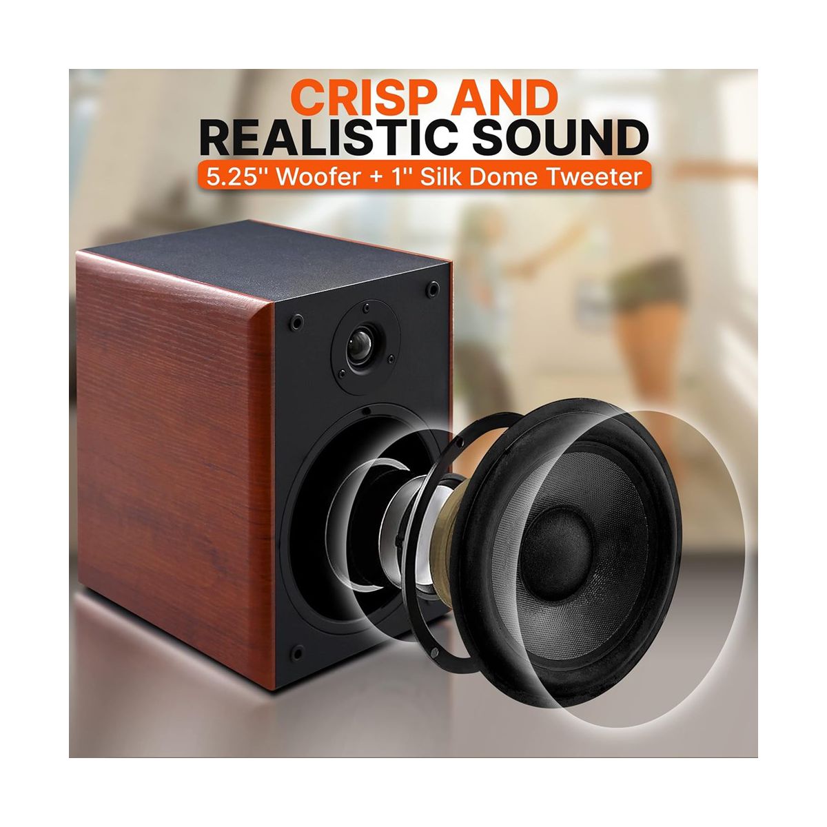 Pyle Home Theater Bookshelf Speakers - PHQBS52, 5.25" Woofer, 1" Silk Dome Tweeter, Pair, Black