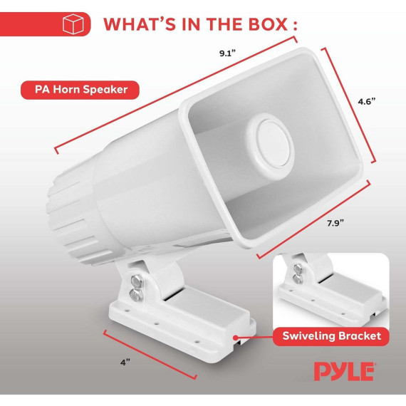 Make your voice or music heard loud and clear with the Pyle Indoor/Outdoor PA Horn Speaker. Designed for versatile use, this durable 8-inch ABS horn speaker delivers powerful audio output and clear sound for both indoor and outdoor settings.
