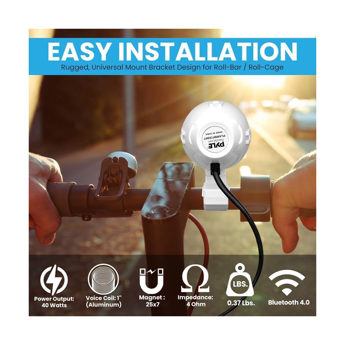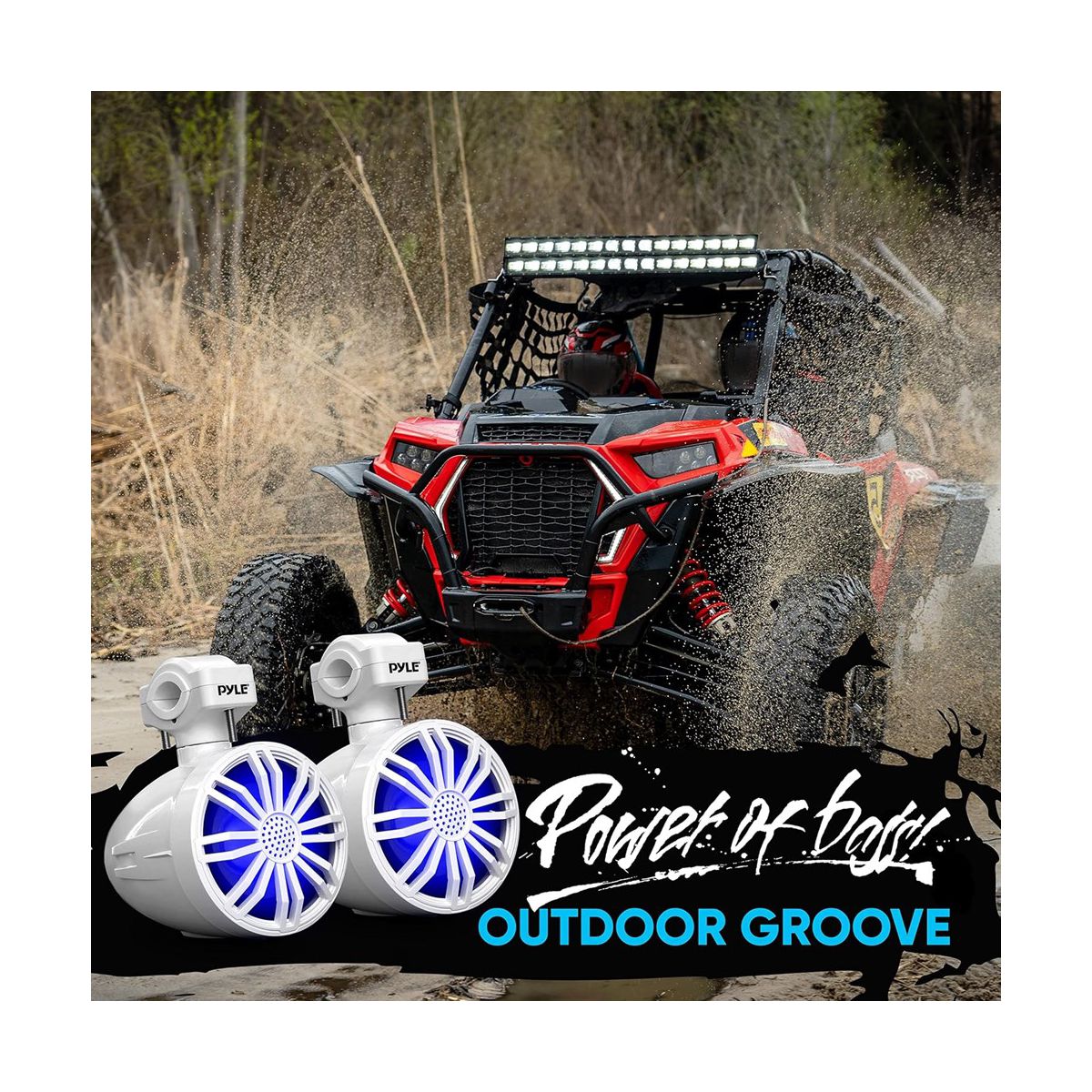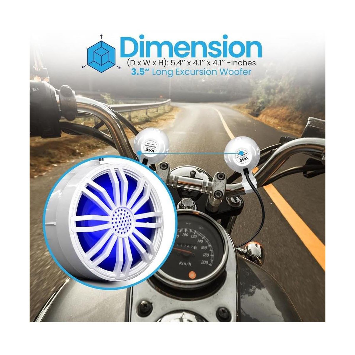 Pyle PLMRBT33WT 3.5" Marine Bluetooth Speaker System with Waterproof Rating, RGB Lights, and Remote Control for Off-Road Vehicles (2 Pcs, White)