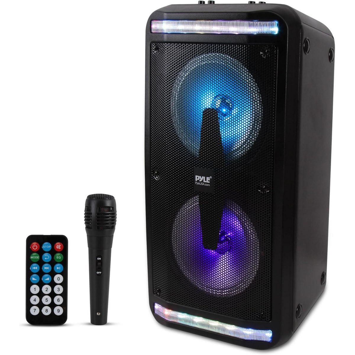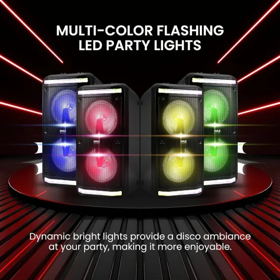 The Pyle PPHP288B.5 Portable PA Speaker & Microphone System is your perfect companion for parties, karaoke, and public gatherings. With a powerful 600W max output and dual 8" subwoofers, this portable speaker system delivers clear, full-range sound and deep bass for an immersive audio experience. Whether you’re hosting a party, practicing karaoke, or making an announcement, this speaker system has got you covered.