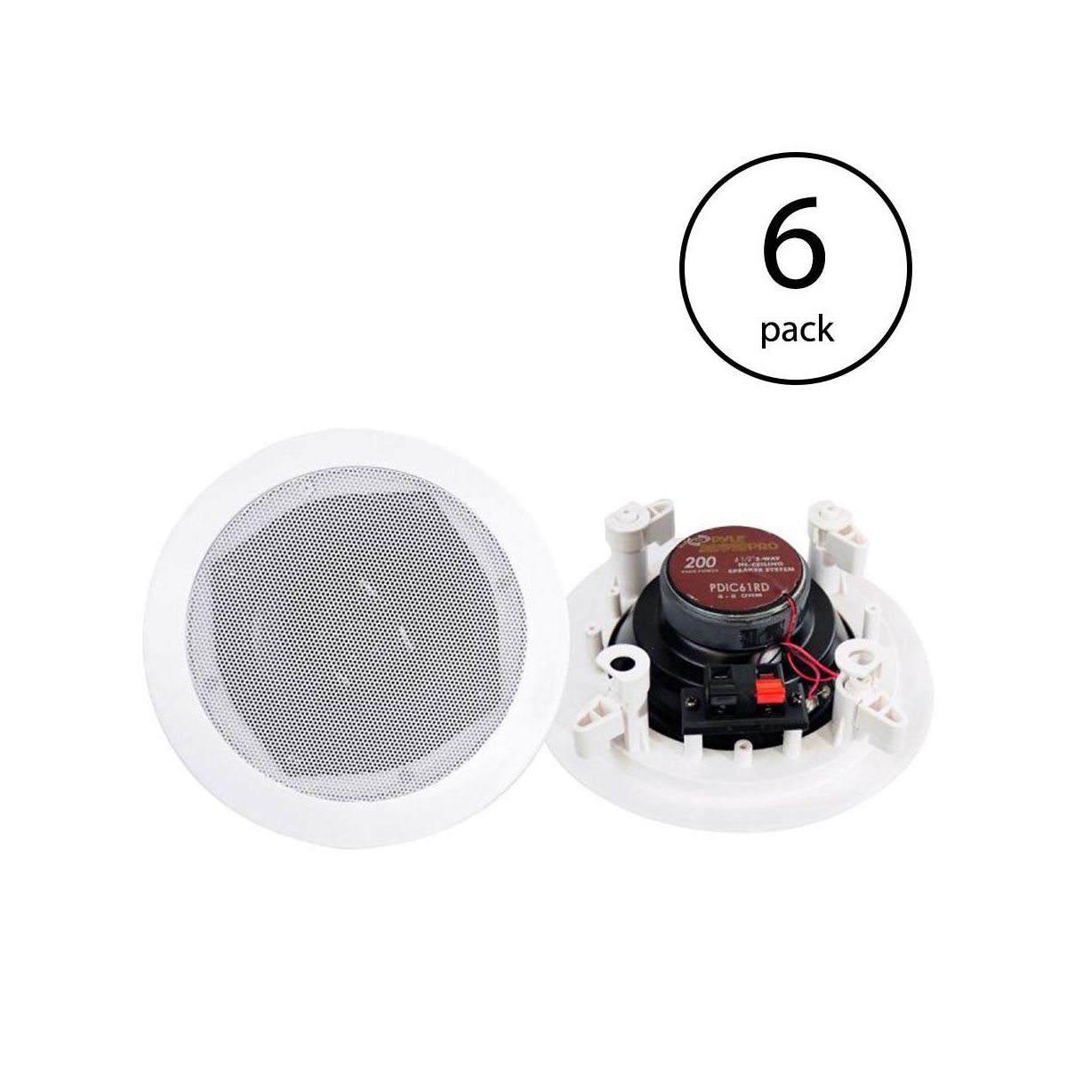 PYLE PRO PDIC61RD 6.5'' 200W 2-Way In-Ceiling/Wall Speaker System White (6 Pack)
