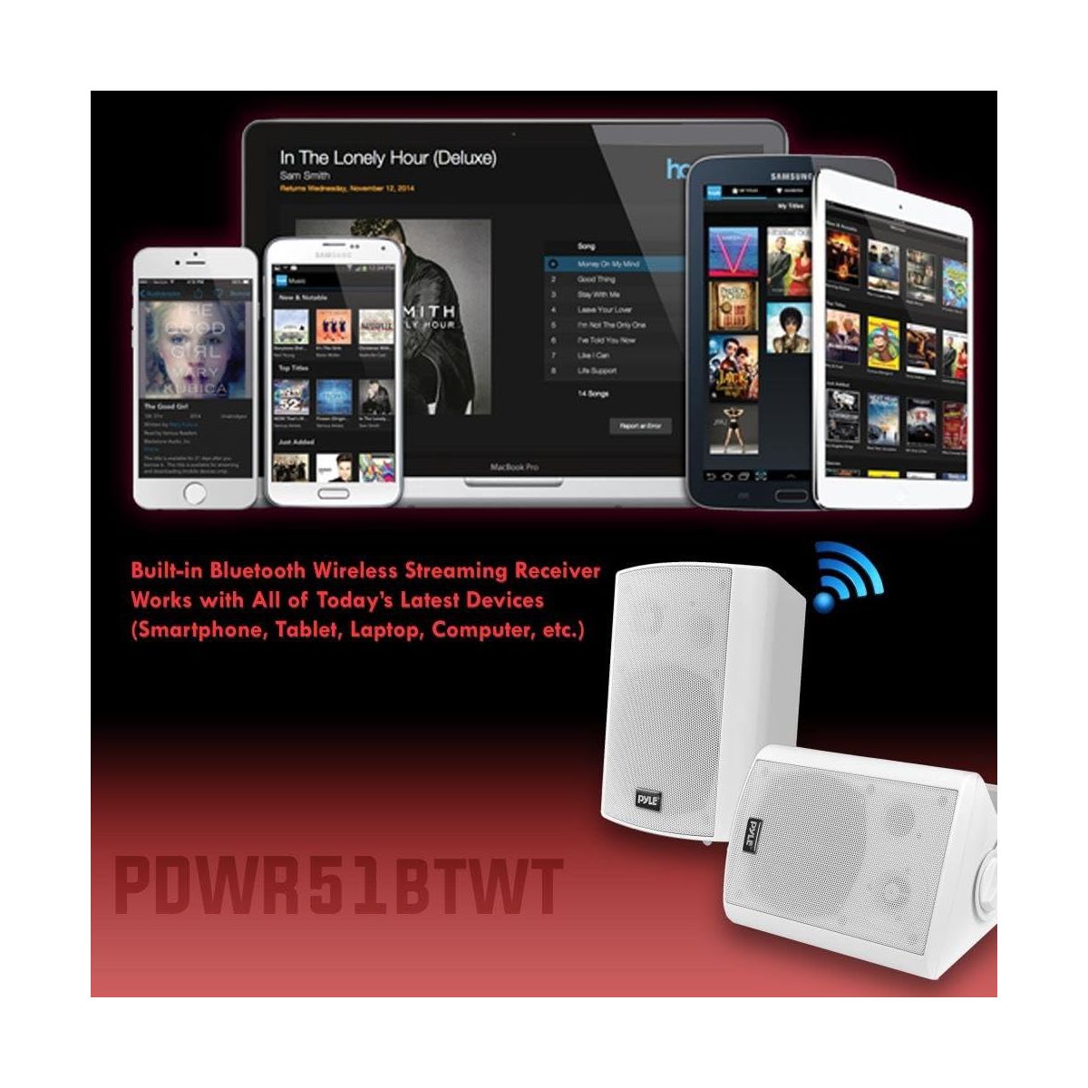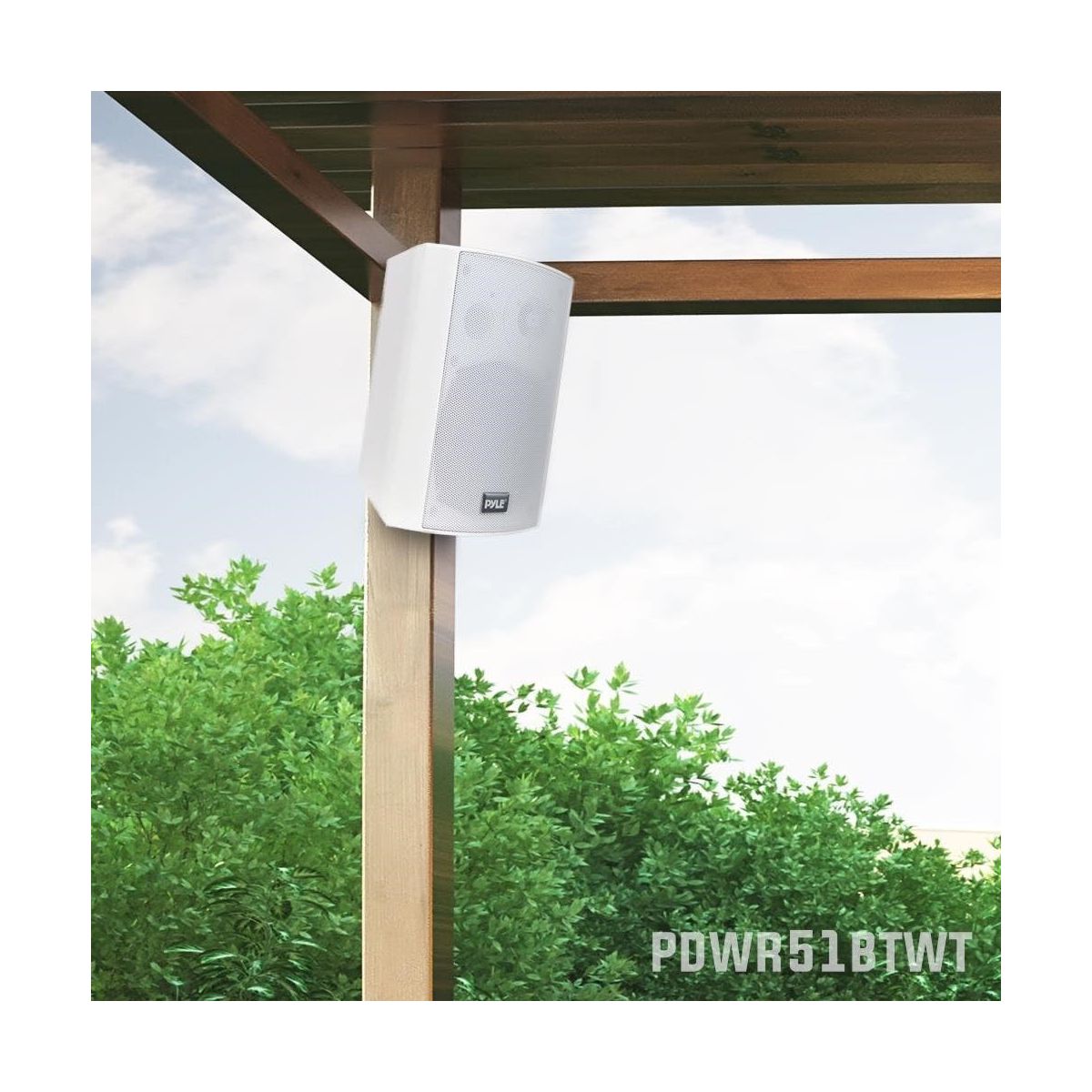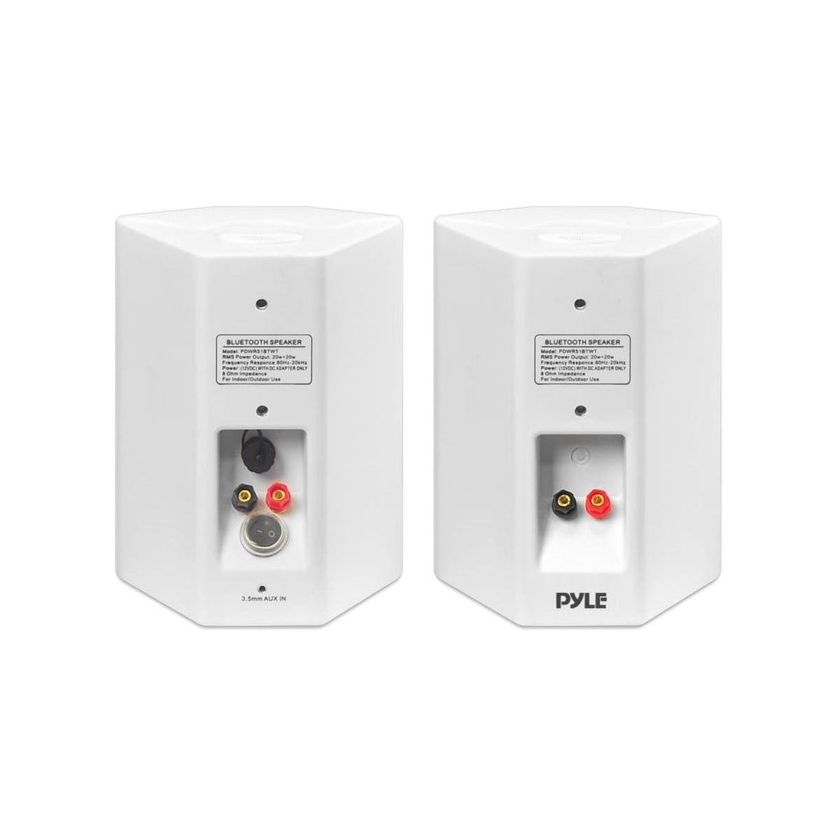 The Pyle PDWR51BTWT is a high-powered, wall-mountable speaker system that provides wireless Bluetooth performance both indoors and outdoors. With its rugged, marine-grade water-resistant construction, this speaker system is perfect for adding full-range stereo sound to patios, decks, boats, or any outdoor space. The set includes two speakers—one active and one passive—along with a built-in digital amplifier for enhanced sound quality.