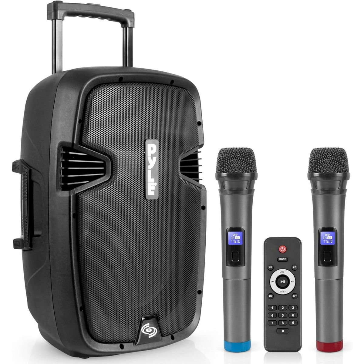 The Pyle Wireless & Portable Bluetooth PA Speaker delivers high-powered audio performance with dual 12” woofers and a 1.34” tweeter for a full range, rich sound. This speaker system offers Bluetooth wireless music streaming and MP3 recording capability and includes two UHF wireless handheld microphones. Ideal for events, performances, or casual gatherings.