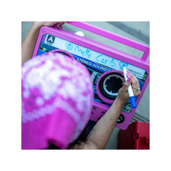 This portable Bluetooth Speaker is in the shape of a retro cassette tape. The Remixx can easily go everywhere, weighing in at only 12.5 pounds. With dual bass radiators, two drivers, and four tweeters, also comes with a wireless microphone for karaoke fun. You can Sync two units wirelessly in TWS (True Wireless Stereo) mode for a louder surround sound experience. Connect your device via Bluetooth or use the Micro SD card slot
