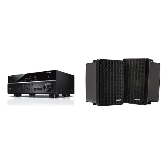 RX-V385 5.1 Channel 4K AV Receiver w/ Kicker KB6B 2-Way Full Range Indoor Outdoor Speakers (Pair) Weatherproof Speakers for Patio Garage Poolside i...