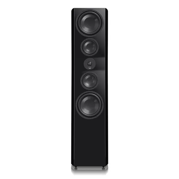 Quad 8” Glass-Fiber Woofers in Force Balanced ArrayDual opposing active woofers on the top and bottom of the cabinet render effortless low frequency response while addressing room modes. Deep authoritative bass is evenly spread throughout the listening area. Mechanical energy from each front-firing woofer is equaled inside the cabinet by the rear-firing woofer eliminating mechanical coloration for pure accurate low frequencies at any playback level.