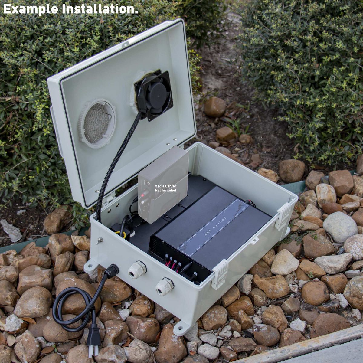 Included is the VS-LS-ENC, a purpose-built landscape enclosure designed to house the Wet Sounds VS-1200-AMP with a plug and play media center, such as the Sonos Port (not included).