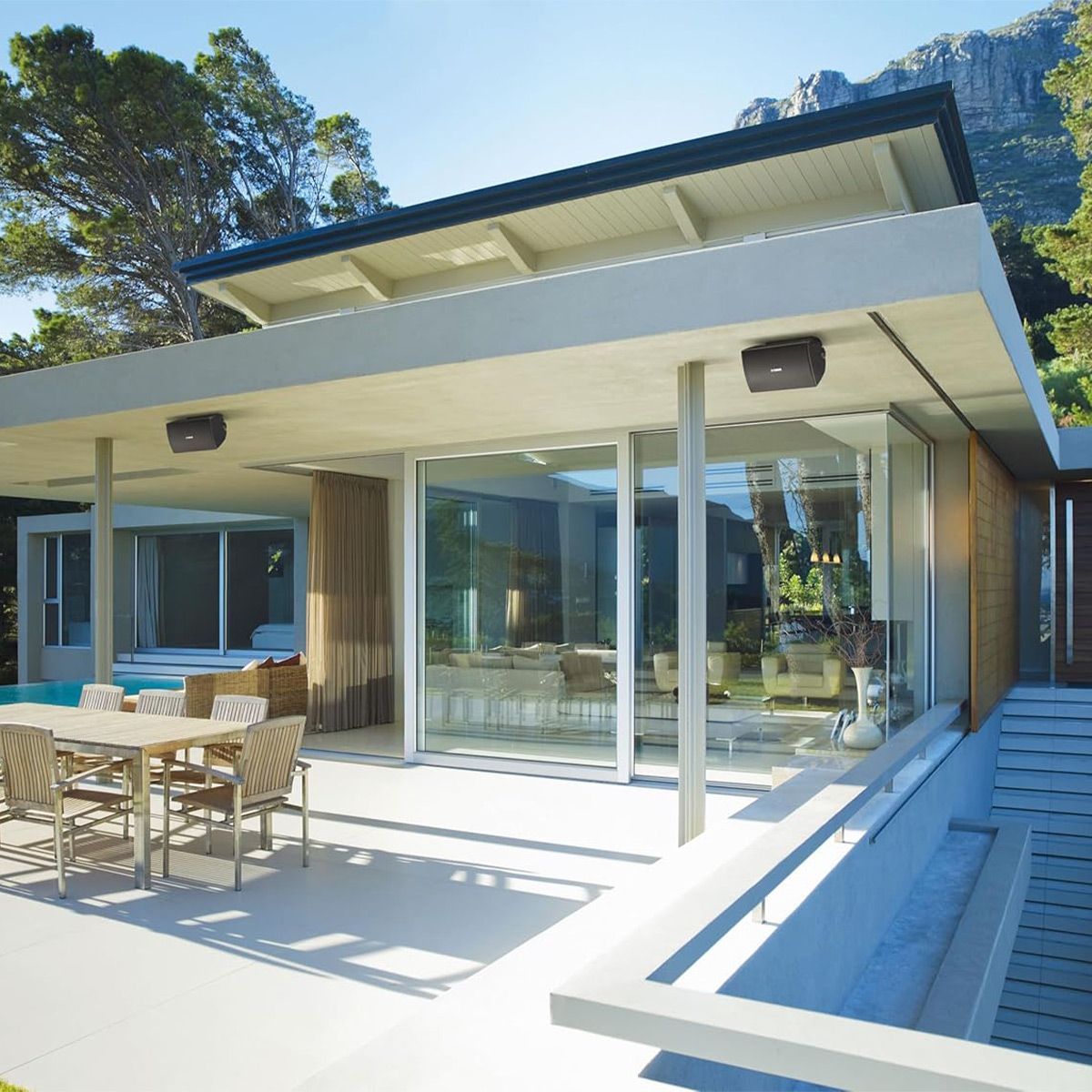 Simple Elegant DesignThese speakers have a clean simple design that will look attractive in any location on the exterior of your house and even present a tasteful appearance when used in an interior installation.