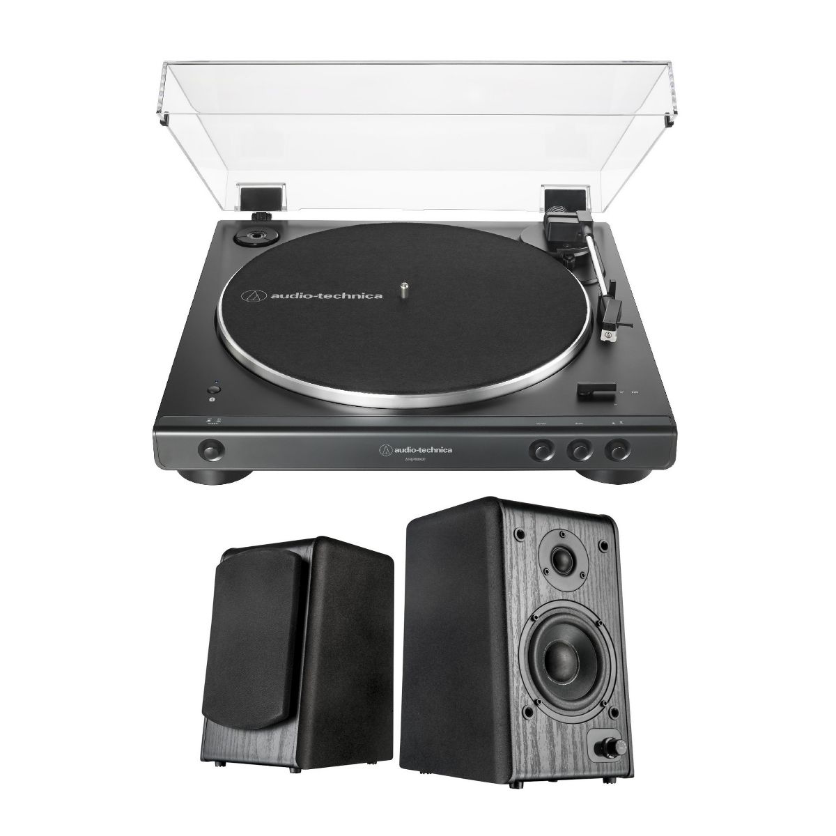 Audio-Technica AT-LP60XBT Bluetooth Turntable (Black) bundle with Speakers Pair