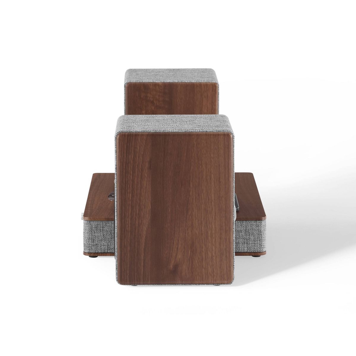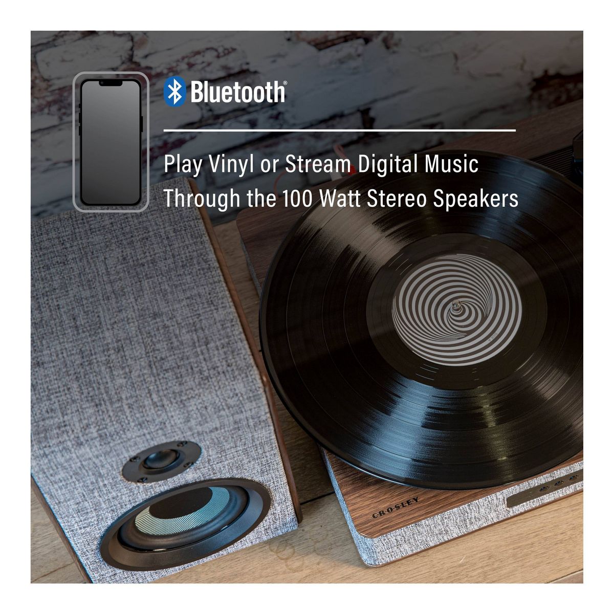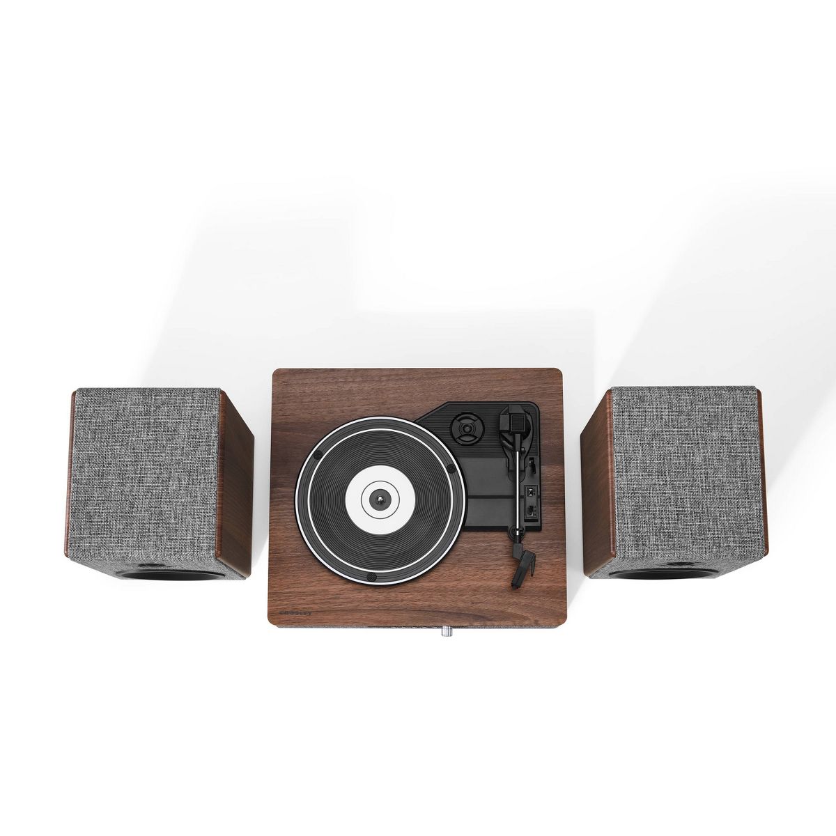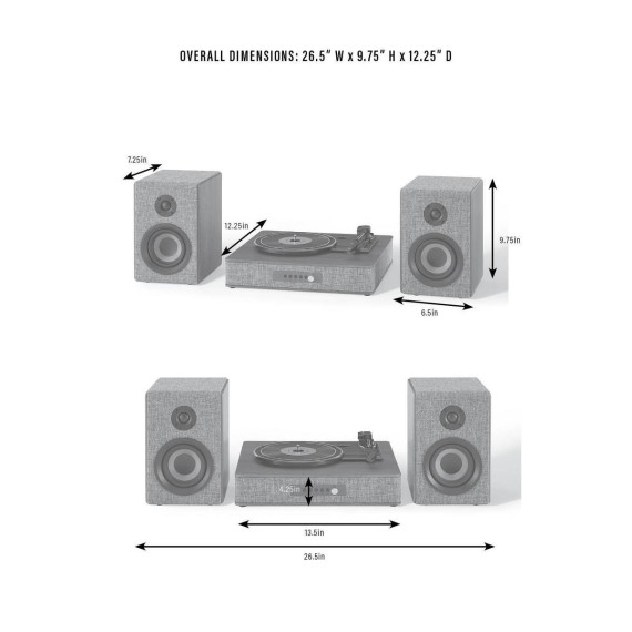 They say clothes make the person, but in this case, they also make the stereo. With eye-catching heather grey fabric accented with walnut wood and silver, the Aria Record Player with Speakers is dressed for success. But this vinyl record player is much more than its charming exterior - the three-speed turntable boasts a built-in Bluetooth receiver and FM radio. Plus, the included bookshelf speakers deliver 100 watts of heart-thumping sound. With capabilities that are impossible to resist, the Aria aligns with the refined tastes of the stylish audiophile.