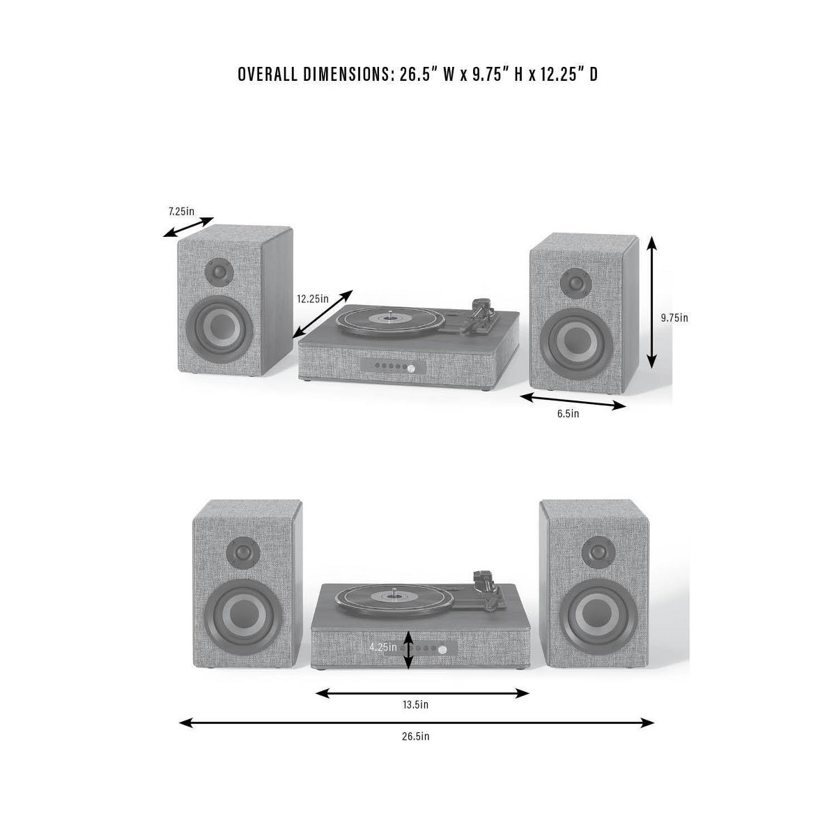 9.75 Inches (H) x 26.5 Inches (W) x 12.25 Inches (D)