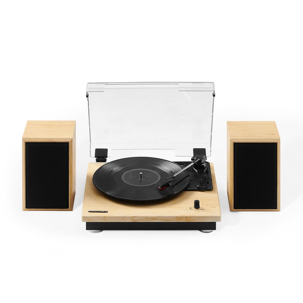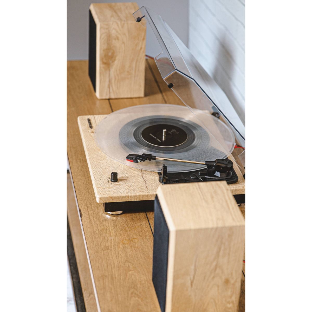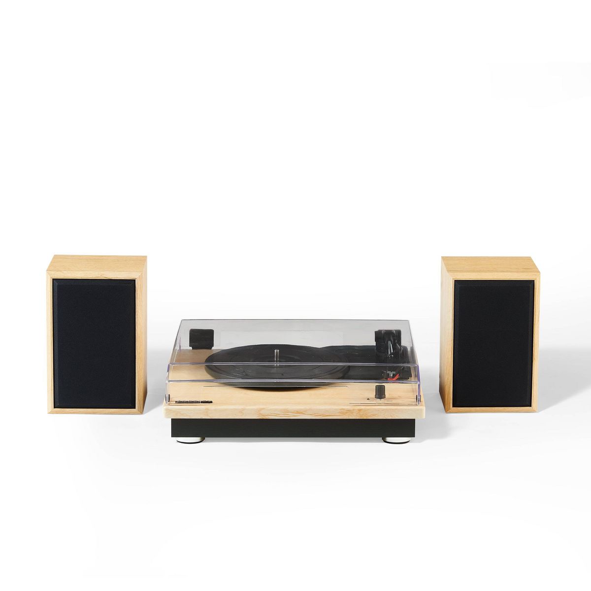 In the music world, the directive “con brio” instructs musicians to play with spirit and vigor, and we know that’s exactly how you live your life. You need a beautiful all-in-one sound system that’s ready to go right out of the box, so we designed the Brio Shelf System with you in mind. Fully equipped with a three-speed turntable, dual speakers, built-in Bluetooth receiver, and a natural finish bringing heavy Scandi-cool vibes, the Brio is the perfect fit for you, your fast-paced life, and your eclectic record collection. Finally, a shelf system that matches your exuberant lifestyle. Live and listen con Brio. 24.5”W x 12.25”D x 8”H