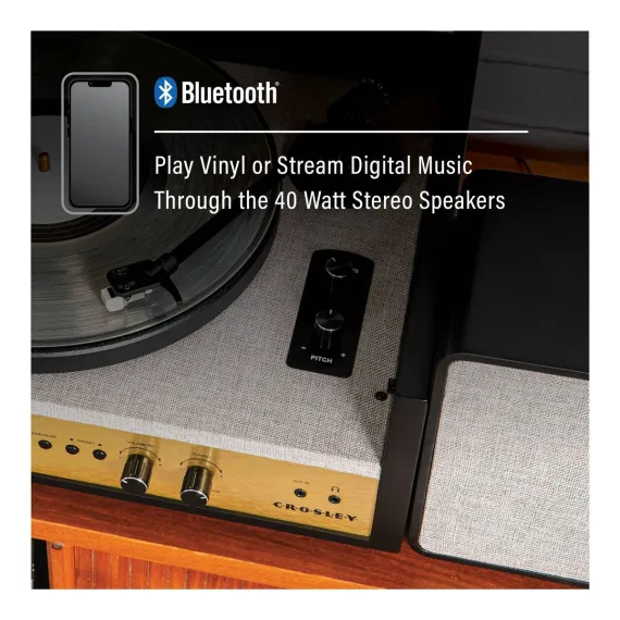 Crosley Coda Shelf System Vinyl Record Player - Black/Gold: Bluetooth 3-Speed Turntable