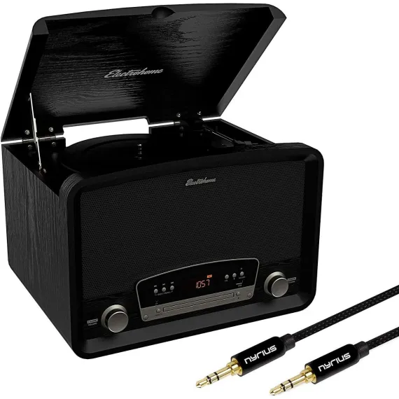 The ultimate expression of our passion for music backed by 100 years of designing home audio products, the Electrohome 7-in-1 Record Player Stereo System with Bonus 3.5mm Aux Cable is your gateway to your entire music collection. Marrying the retro charm of vintage vinyl record player consoles with the technology of today, the Kingston is the last music system you will ever need.