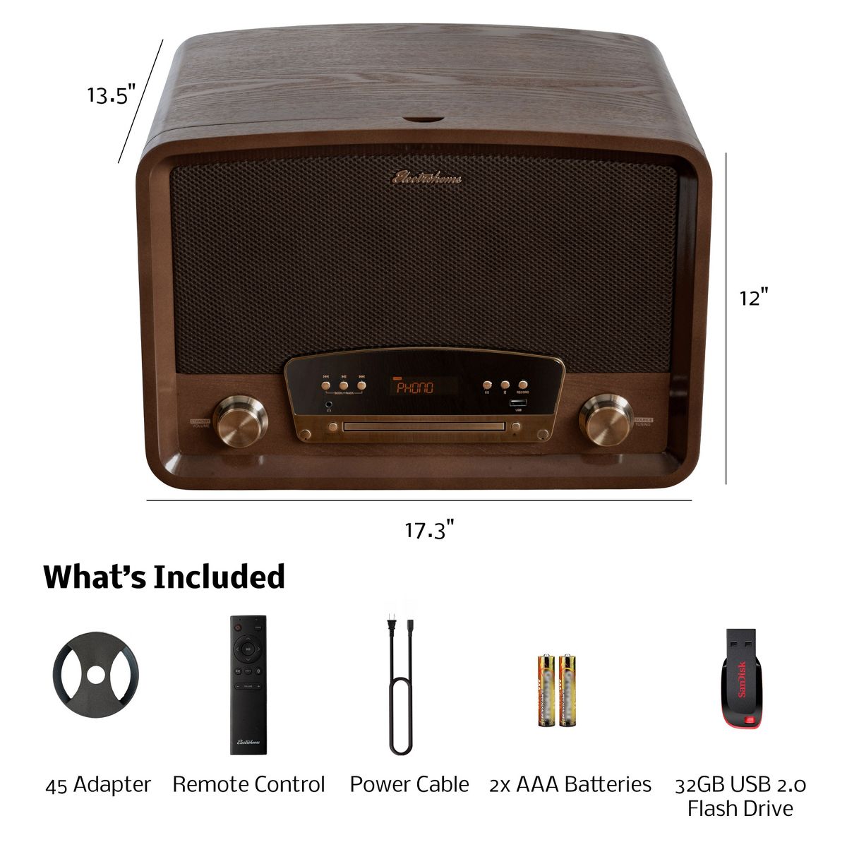 Electrohome Kingston Vintage Vinyl Record Player - Turntable Bluetooth Radio CD Aux USB Vinyl to MP3 with 32GB USB Drive - Walnut