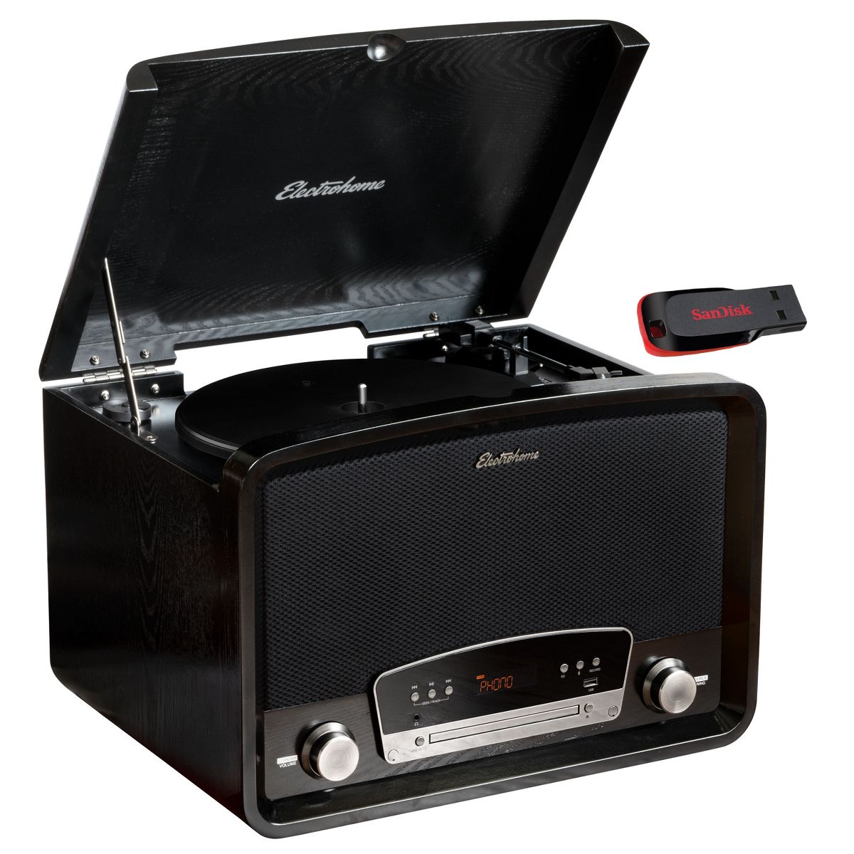Digitize your precious vinyl records or CD collection to MP3 and preserve them for life with the touch of a button. Play back any MP3 file via the USB drive (32GB drive included). Plug, play, and press record with no additional software needed - it's that easy!