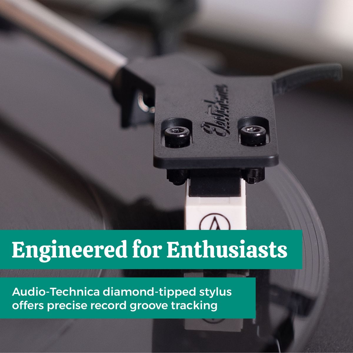 Developed with an aluminum tonearm isolated from the anti-resonant platter to improve record groove contact and reduce unwanted vibrations from affecting your music. Paired with Audio-Technica's diamond-tipped needle renowned for its durability and reputation for delivering accurate sound reproduction with extended playing time.